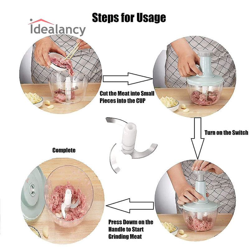 Manual Hand Operated Chopper Pump Action With Free 3 Blades Food Processor Portable Container And Easy To Clean Kitchen Gadget.
